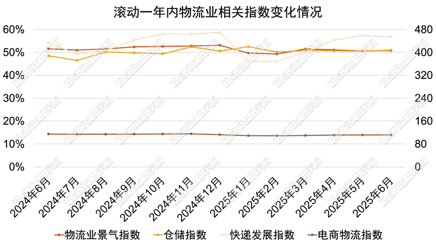 观点指数 物流各项指数方面,2025年6月份仓储指数为51%,较上月上升0.5个百分点。从分项指数来看,同上月相比,新订单指数、业务利润指数、平均库存周转次数指数、业务活动预期指数有所上升,升幅在0.7至3.3个百分点之间;期末库存指数有所下降,降幅为0.4个百分点。