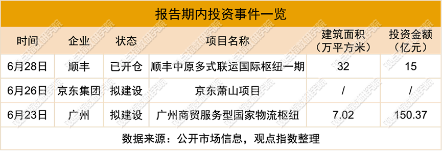 报告期内,共录得3起投资事件相关动态,项目主要为枢纽型项目。