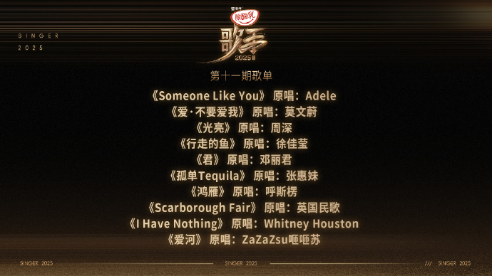 7月24日,据@湖南卫视 ,EP11「终极揭榜赛」悬念歌单解锁: