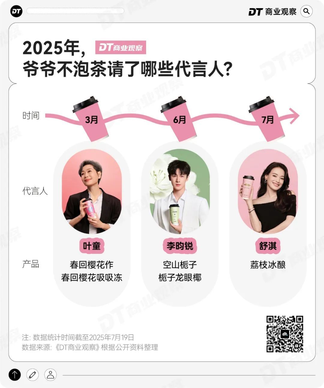 不过,合作舒淇,并不是爷爷不泡茶第一次展现出对代言人的精准判断力。