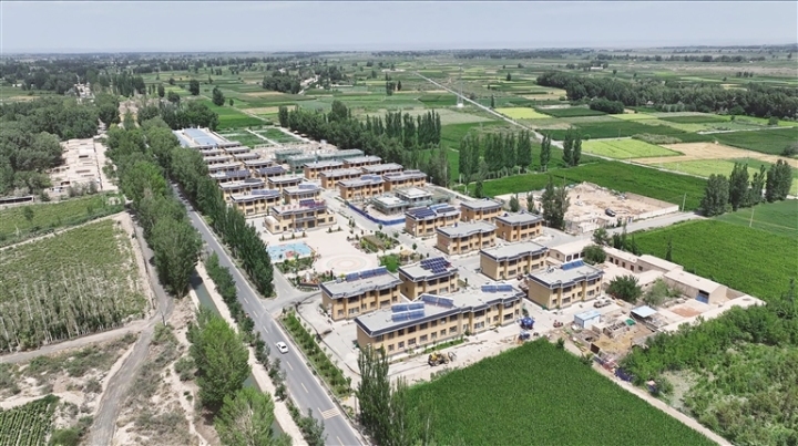 “中东镇王子庄村集中安置点项目占地1.8万平方米,于今年4月开工建设。通过征求搬迁户意愿建议,并经镇村组三级反复酝酿讨论,精选建设了群众选择最多的4种宜居户型。目前主体已基本封顶,正进行外墙保温及粉刷,计划9月底交付。”金塔县中东镇副镇长李琼介绍,中东镇已打造了包括团结和美居在内的4个集中安置点。