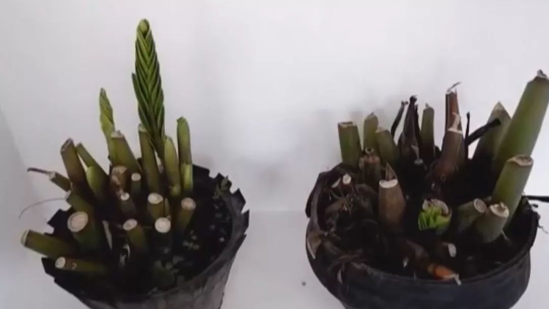 这些枝条长了三周左右就将能长出健壮的根系,根系长好之后,底部会慢慢萌发一些肉瘤状的块茎,里面是饱满水分的。