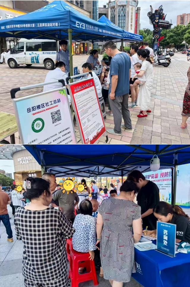 7月21日至24日晚,岳阳爱尔眼科医院联合岳阳楼区社工站,带着专业设备和满腔热忱,连续三晚走进五里牌街道天伦广场、东茅岭街道步步高广场、洛王新天地广场。
