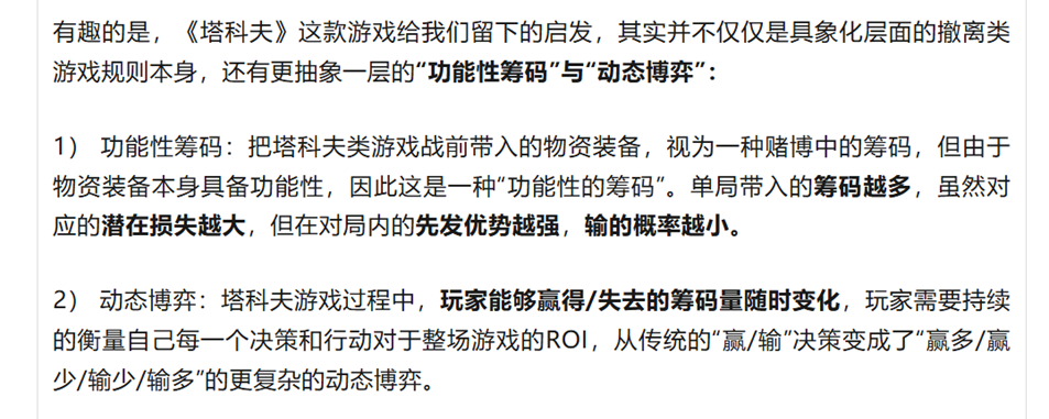 最后,还是我们从2021年开始就提到过、在今年年初文章中也详细阐述过的,搜打撤产品中赌博要素的抽象化,从这个角度出发,许多策略性的单局玩法也存在所谓“打撤”或者“打搜撤”之类的设计空间,有很多行业内的文章也对此展开过充分的讨论,但这里就不再赘述了。