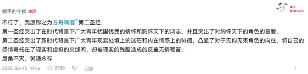 但更微妙的是,“我们联合”是一部2021年的作品。从2021年到2025年这四年间,从“我们联合”到“没有几个”,年轻群体遭遇了疫情和经济下滑的巨大现实挑战后,其整体思潮发生的潜在变化在两个鹰角玩家的酒后真言上体现得淋漓尽致。