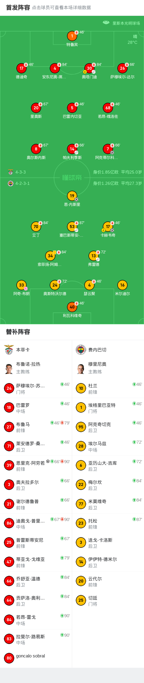 北京时间7月27日,一场俱乐部友谊赛在本菲卡与费内巴切之间展开。比赛第37分钟,帕夫利季斯送出助攻,阿克蒂尔科奥卢推射破门,为本菲卡首开纪录。第42分钟,阿奇-布朗不慎自摆乌龙,本菲卡扩大领先优势。临近上半场结束,弗雷德助攻卡赫韦奇破门,为主队扳回一城。易边再战,第60分钟,塞巴斯蒂安-希曼斯基送出精妙传球,恩-内斯里冷静破门,将比分扳平。第81分钟,奥塔门迪送出助攻,恩里克-阿劳若完成绝杀。最终,本菲卡以3比2战胜费内巴切。