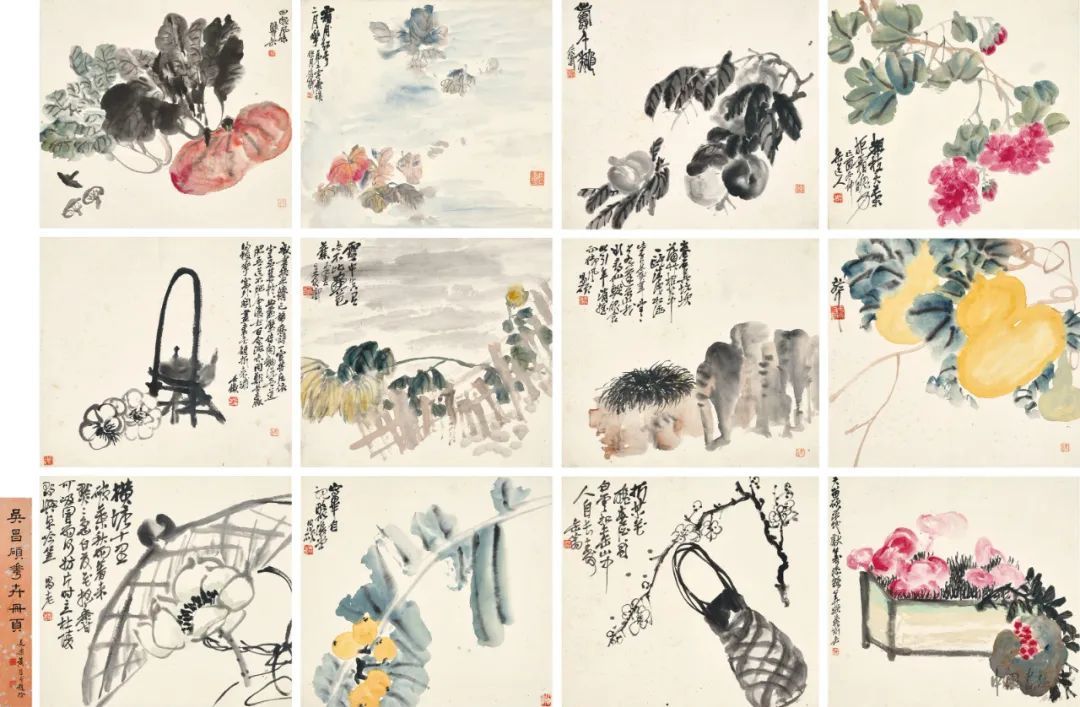 吳昌碩《花卉冊》設色紙本 冊頁十二開 一九〇九年作