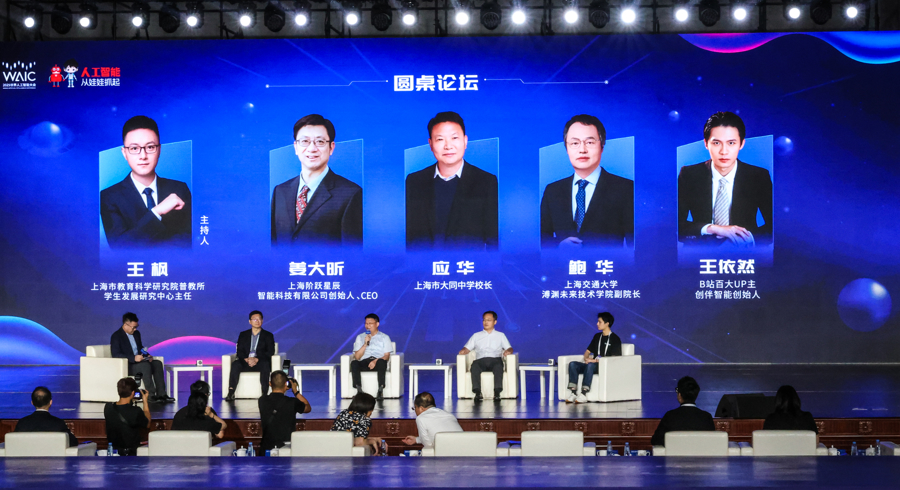 论坛首创人机协作模式,虚拟助手“小智”实时扫描观众提交的60余条“奇妙小疑惑”,通过智能分析筛选代表性议题。上海市教育科学研究院普教所学生发展研究中心主任王枫作为特邀主持人同与会嘉宾围绕青少年真实困惑展开对话:上海市大同中学校长应华、上海阶跃星辰智能科技有限公司创始人、CEO姜大昕、上海交通大学溥渊未来技术学院副院长鲍华、B站知名UP主图灵的猫阐围绕主题各抒己见,发表精彩观点。