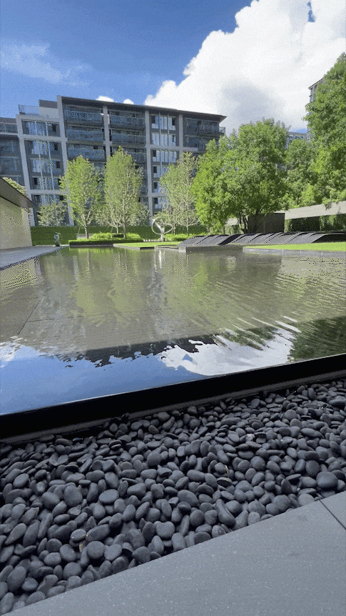园林中的镜面水池比常规项目多投入40% 成本,水的流速被精细到秒级计算,最终呈现出 “高级艺术馆” 般的静谧质感。