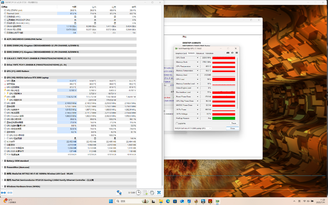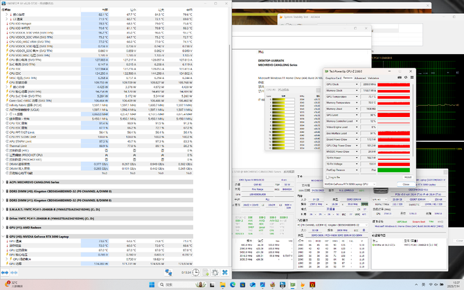 双烤,CPU稳定在110W,两个CCD频率都在3.05GHz左右,伴随着功耗下降,核心温度也控制在了82.1℃,额外堆叠的L3缓存更是只有71.5℃;GPU功耗仍为175W,核心频率2250MHz,温度控制在73.6℃。双烤整整285W啊!这个功耗,配上这个温度,都不能简单说是优秀的级别了,只能说是外星科技。