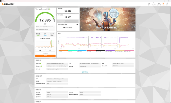 更严苛的Time Spy Extreme中,则是获得了显卡12412分、处理器12305分,综合12395分的成绩。