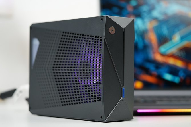 机身后侧,则是一个支持140W 私有协议PD充电的全功能USB-C口,一个全新的MINI DP 2.1接口,一个全尺寸HDMI 2.1 FRL接口,水冷接口与电源接口。内吹结构有效地规整了机身接口的整齐程度。