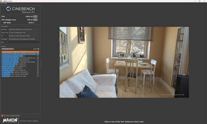 R20中,单核850分、多核15843分;