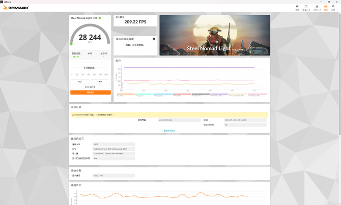 更现代的Steel Nomad Light中,这台苍龙16 Ultra更是豪取28244分、209.22FPS的综合成绩,十分夸张。