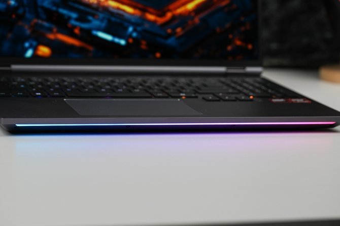 身为游戏本,RGB自然不能少。苍龙16 Ultra A面的机械革命Logo升级为了RGB版本,同时C面1.4mm键程的全尺寸键盘也拥有单键可调RGB,亮度相当充足。