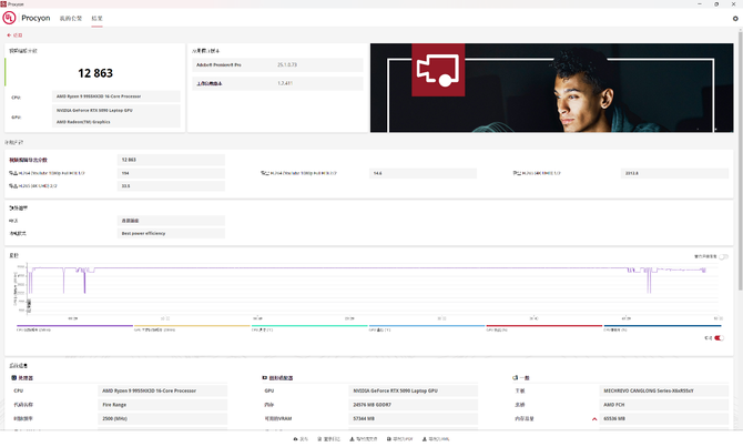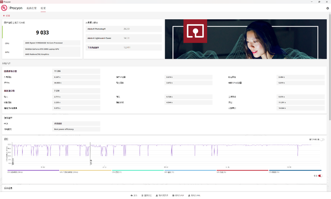 此外,我们还测试了Procyon生产力套件。在视频剪辑项目中,苍龙16 Ultra获得了12863分的成绩,图片编辑项目中也有9033分的成绩。