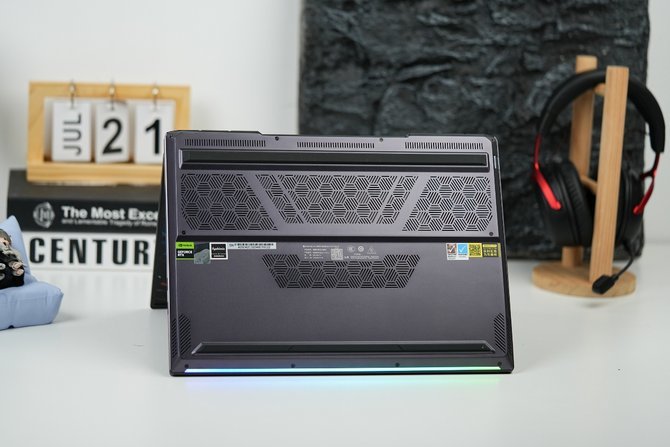我们手上的这台苍龙16 Ultra作为机械革命的当家旗舰,采用了全新的内吹散热模具,拥有三风扇+五热管的超强散热组合,使得散热系统能更高效地进风和散热,也让整机仅保留尾部的两个出风口,更加整洁。