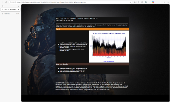 作为传统的显卡杀手,《地铁:离去》Extreme预设+Ultra光追+DLSS质量档的条件下,苍龙16 Ultra平均帧达到了93.26帧,操作反馈明确,畅玩基本无忧。