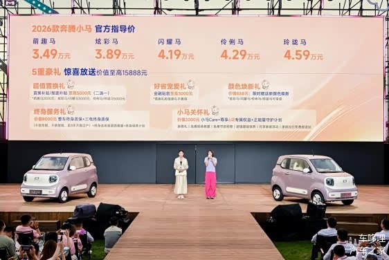 7月27日,2026款 奔腾小马正式上市,全系5款车型均拥有222km超长续航,售价区间 3.49万元-4.59万元,上市期间,下订用户还可享价值至高15888元的5重购车好礼。