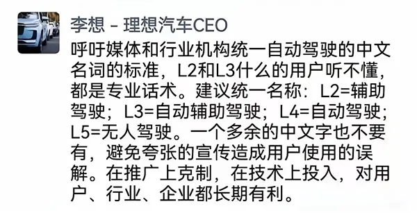 当然,并非所有车企都“擅长”过度宣传。有车企CEO也曾直言,目前所有的智能驾驶解决方案本质上都是辅助驾驶,即便所谓的L3级也只能称之为辅助自动驾驶,责任也是由厂商和驾驶员共同承担。这种坦诚的态度值得行业借鉴。