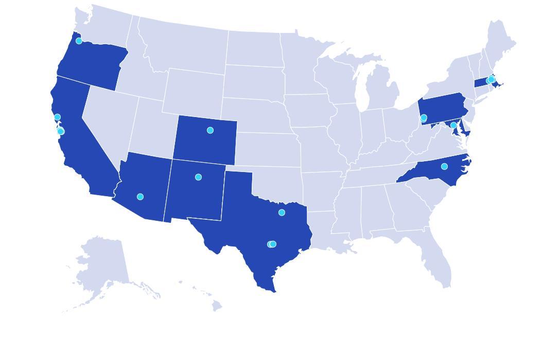 Marvell 是定制芯片和通信芯片的重要厂商,服务于云计算、存储、车载和 5G 市场。总部位于加州圣克拉拉,其 AI 加速器业务在北卡罗来纳州扩张迅速;爱达荷州则是 Marvell 通过收购 Inphi 后的重要据点。马萨诸塞州和纽约州的办公室负责部分通信算法与信号处理研发。Marvell 并不自己生产芯片,主要依赖外部晶圆代工。
