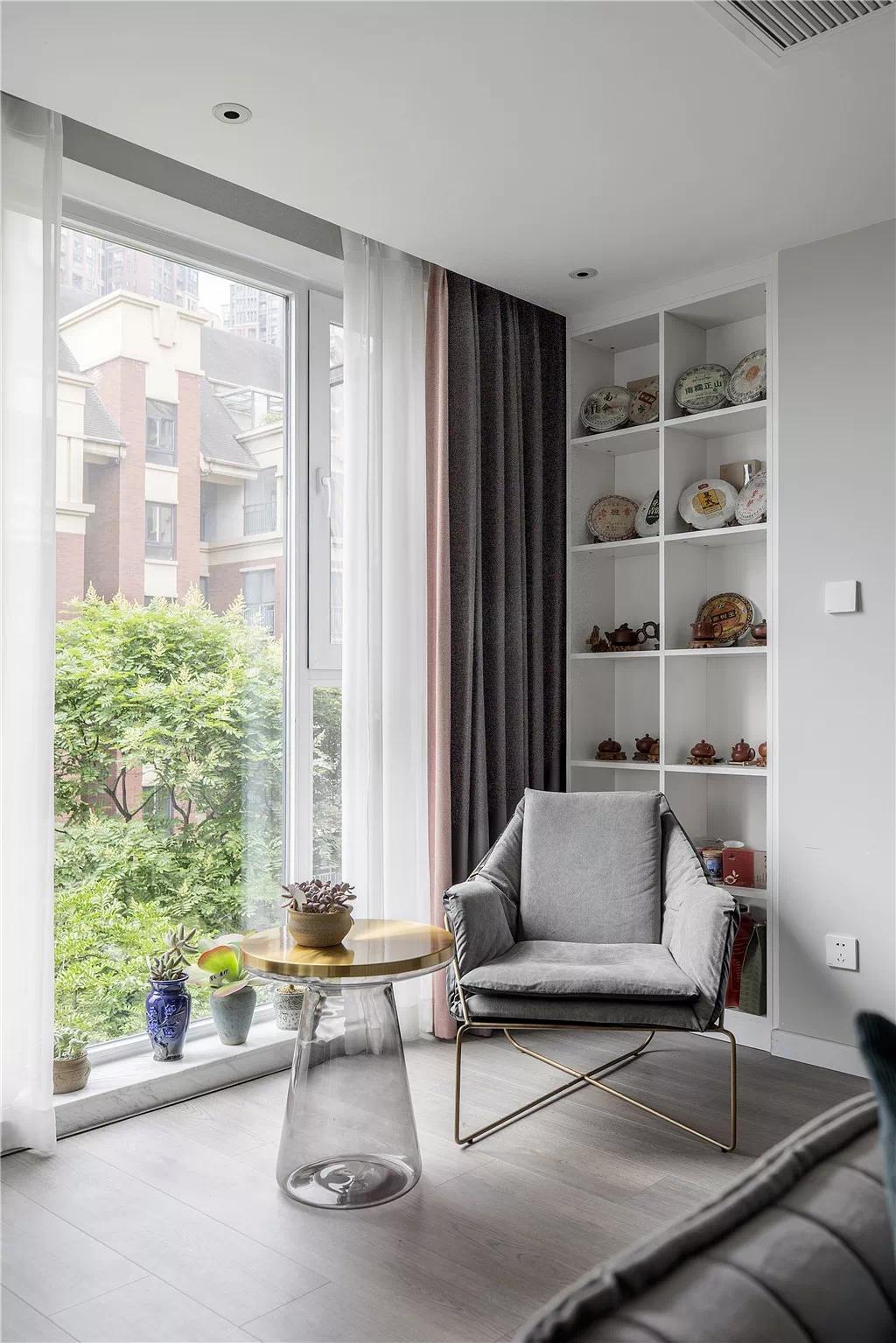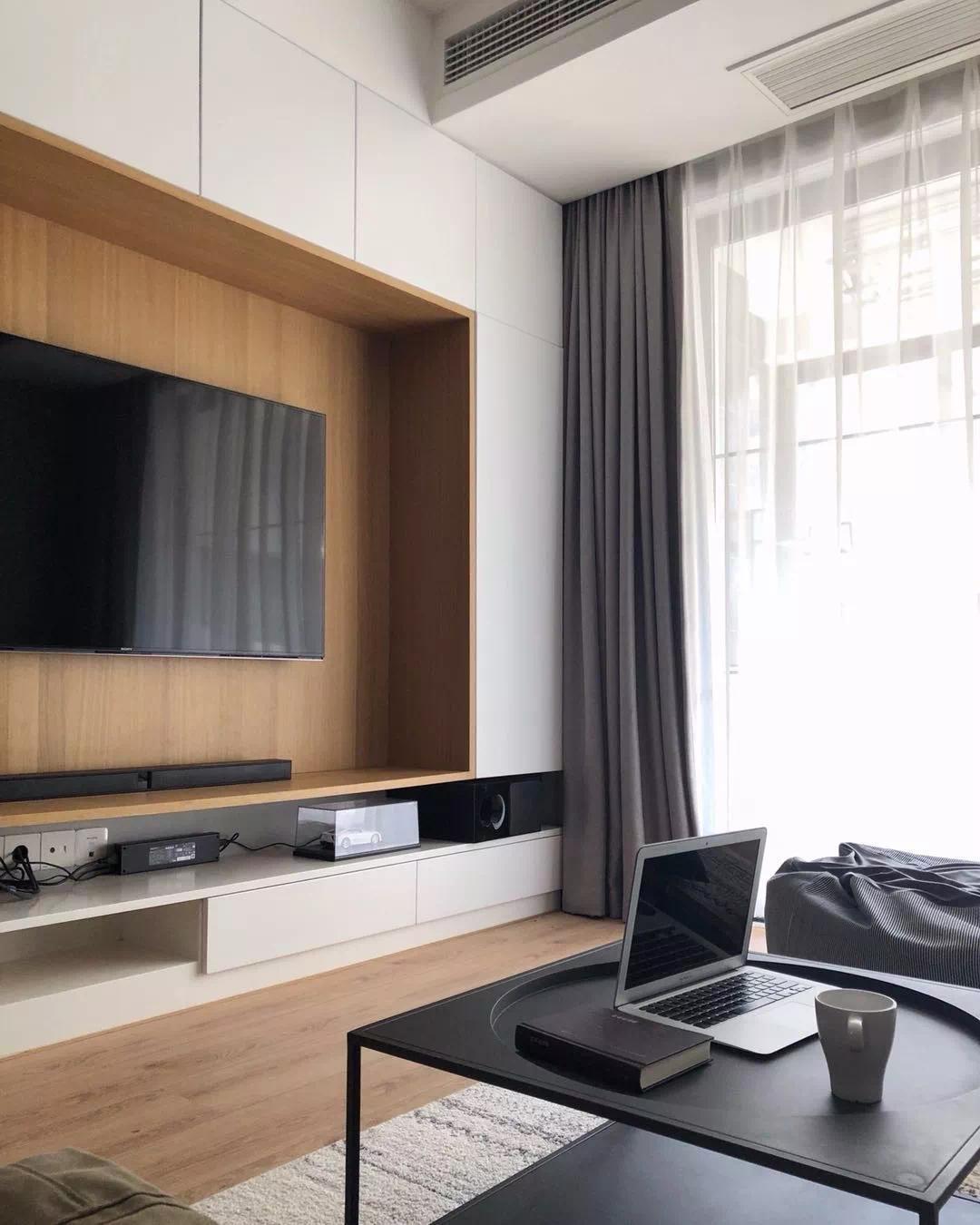只要客厅窗户不是太小,而且不需要在窗下摆东西,做满墙落地的窗帘是不二之选,这种顶天立地的效果才更显空间,当然也更加美观。
