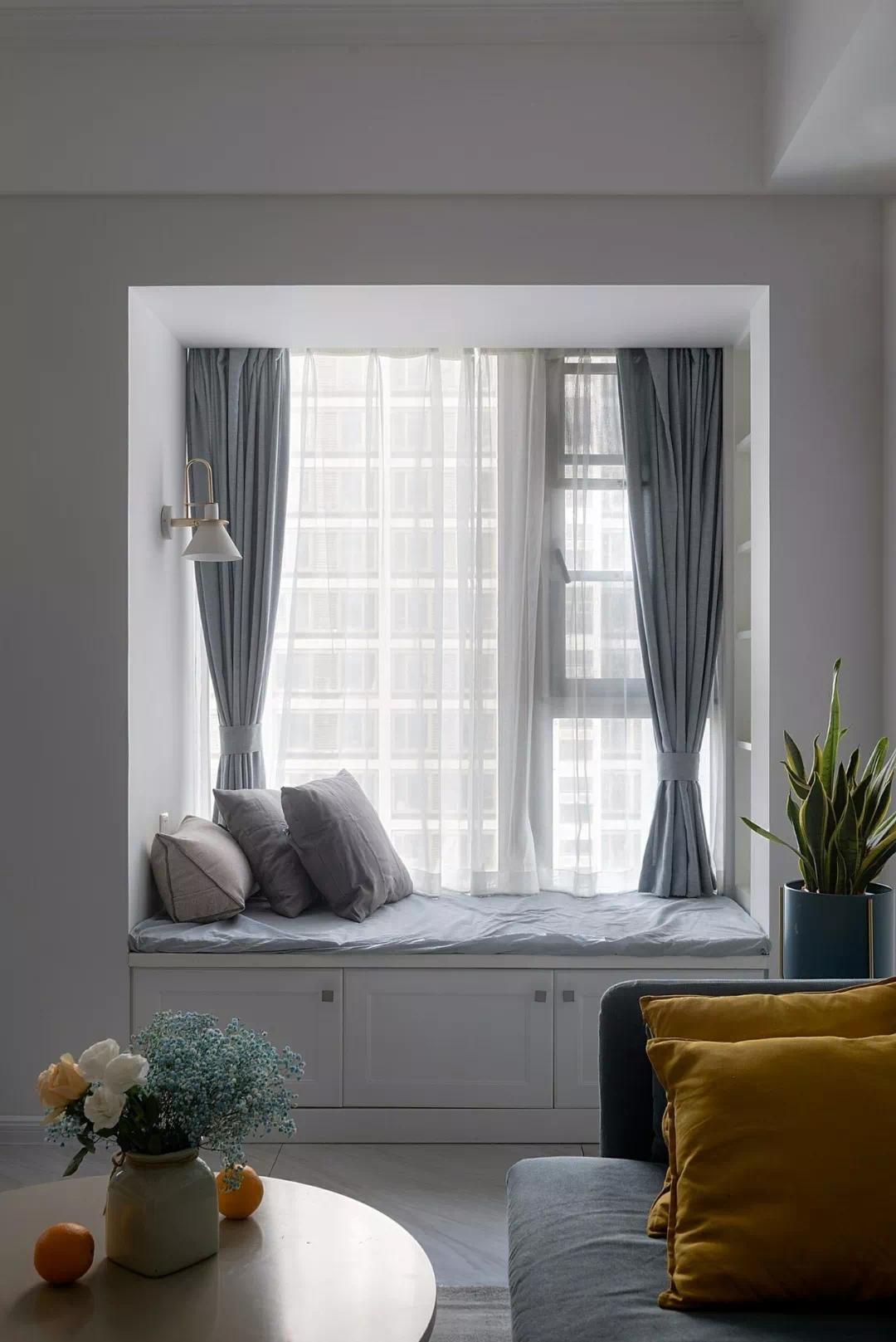 2、如果客厅是飘窗,选什么样的窗帘?