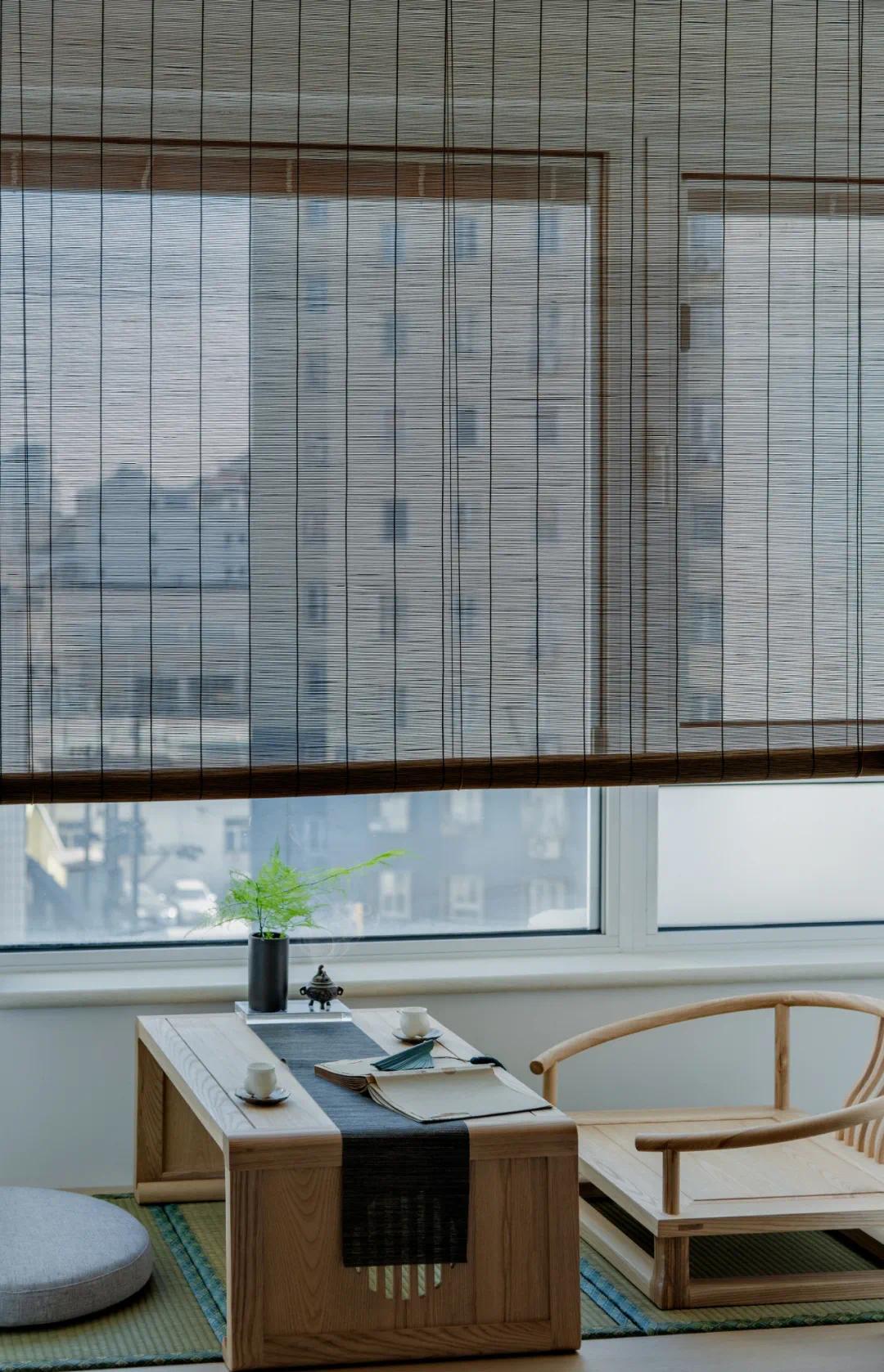 如果窗户下放东西,比如书架、沙发等物件,可以选择百叶窗或者卷帘,效果也非常不错。