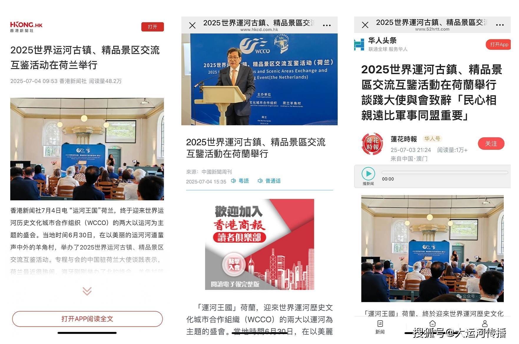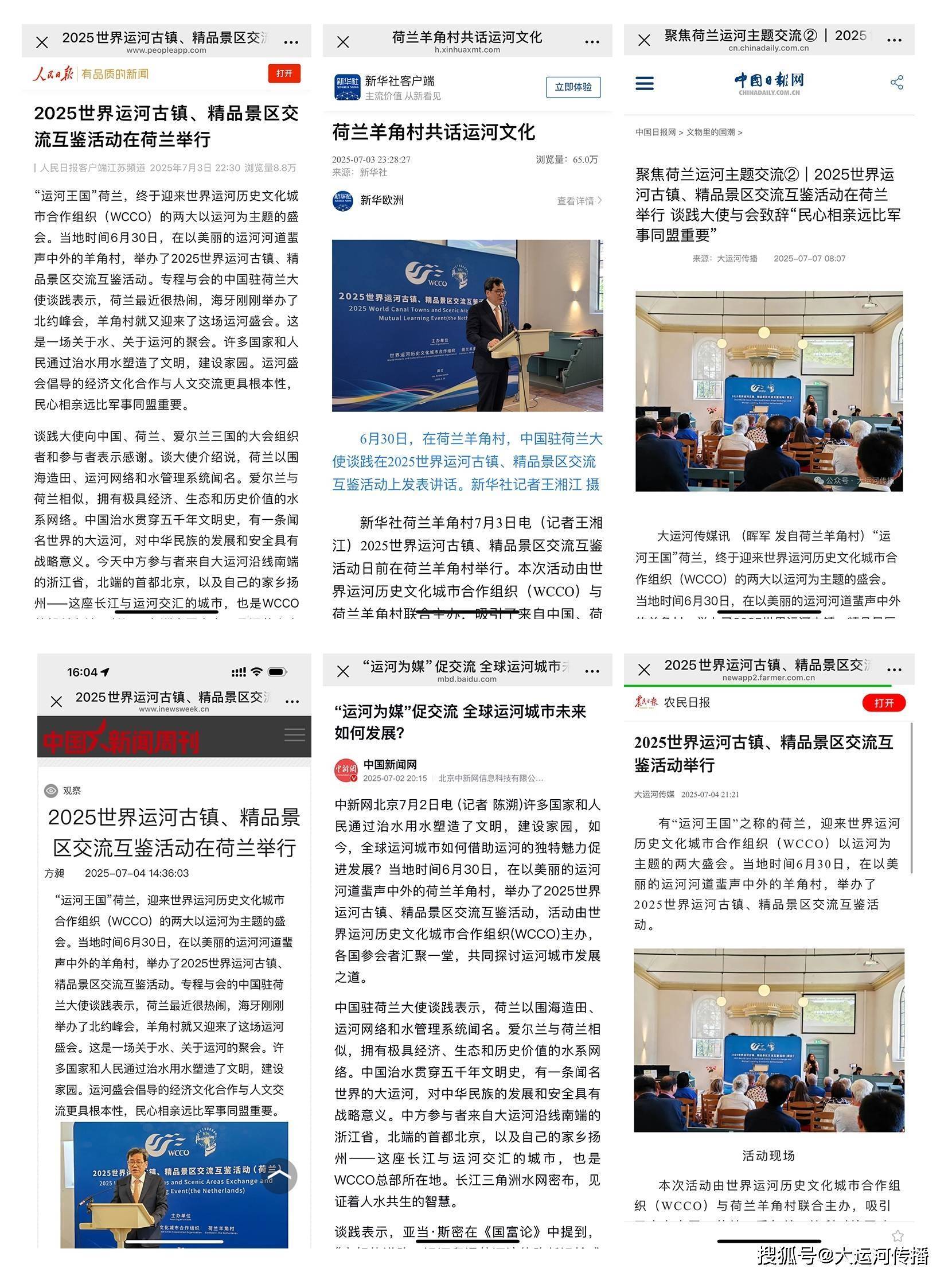 当地时间6月30日~7月2日,2025世界运河古镇、精品景区交流互鉴活动在荷兰羊角村举行。这是世界运河历史文化城市合作组织(WCCO)两大品牌活动——“世界运河古镇合作机制”与“运河城市精品景区合作机制(CCSC)”首次联合出海举办。接下来,让我们一起走进这场盛会,全方位回顾其精彩瞬间与重要成果,感受中外运河文化交流合作的无限魅力与广阔前景。