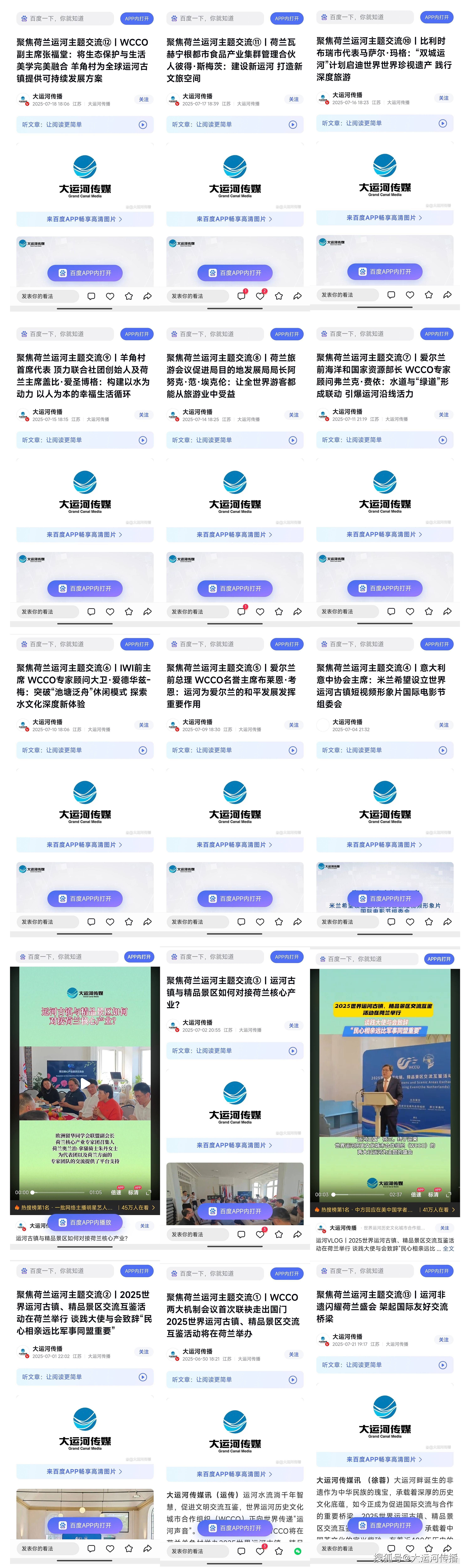 大运河传媒作为WCCO的官方媒体平台,拥有多端融媒体矩阵,WCCO副秘书长、大运河传媒总编辑王晖军赴荷兰现场报道,以现场直播、视频、文图新闻等多形式对会议进行全方位报道。并陆续推出重要嘉宾访谈等内容。