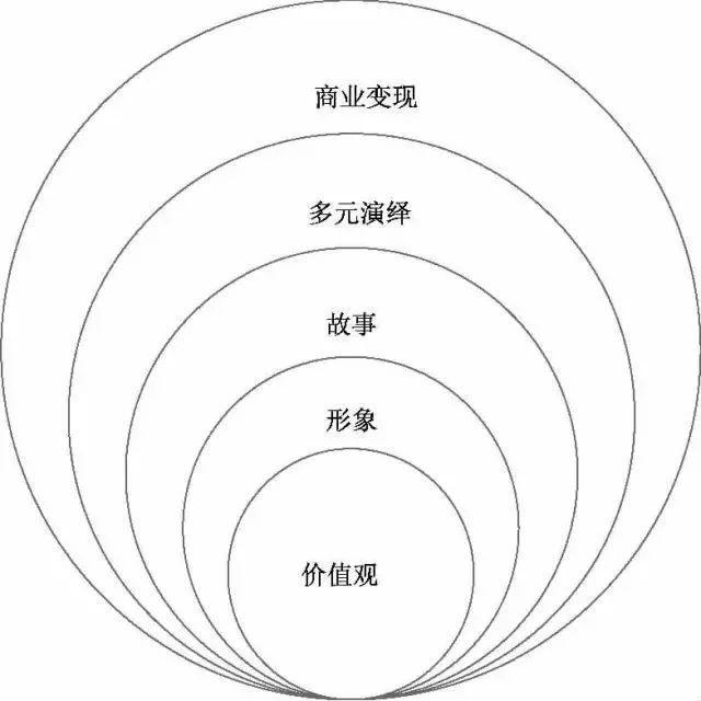 《北京大学学报》关于明星IP最大价值化的一篇文章曾指出,“明星IP包含五项基本要素,各要素符合一种由内到外层层包裹的洋葱型结构。其中,最中心的要素是核心价值观(Values) ,然后依次向外展开的要素为鲜明形象(Image)、故事(Story)、多元演绎(Adaptation) 与商业变现(Commercialization) 。”