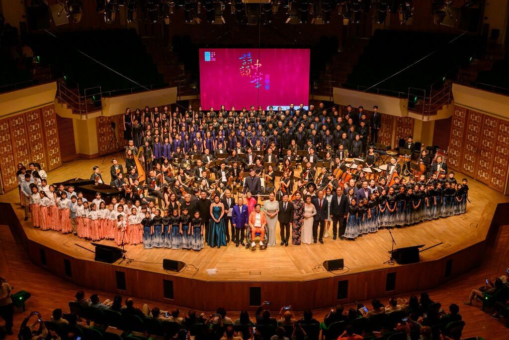 当晚音乐会开场由寰宇交响乐团、香港歌剧院合唱团、香港理工大学合唱团等联手演出《黄河大合唱》。现场既有20世纪经典乐章,也有香港本地作曲家受古典诗词启发创作的当代作品,包括麦家乐编曲、取材自白居易名篇的《长恨歌》选曲等。