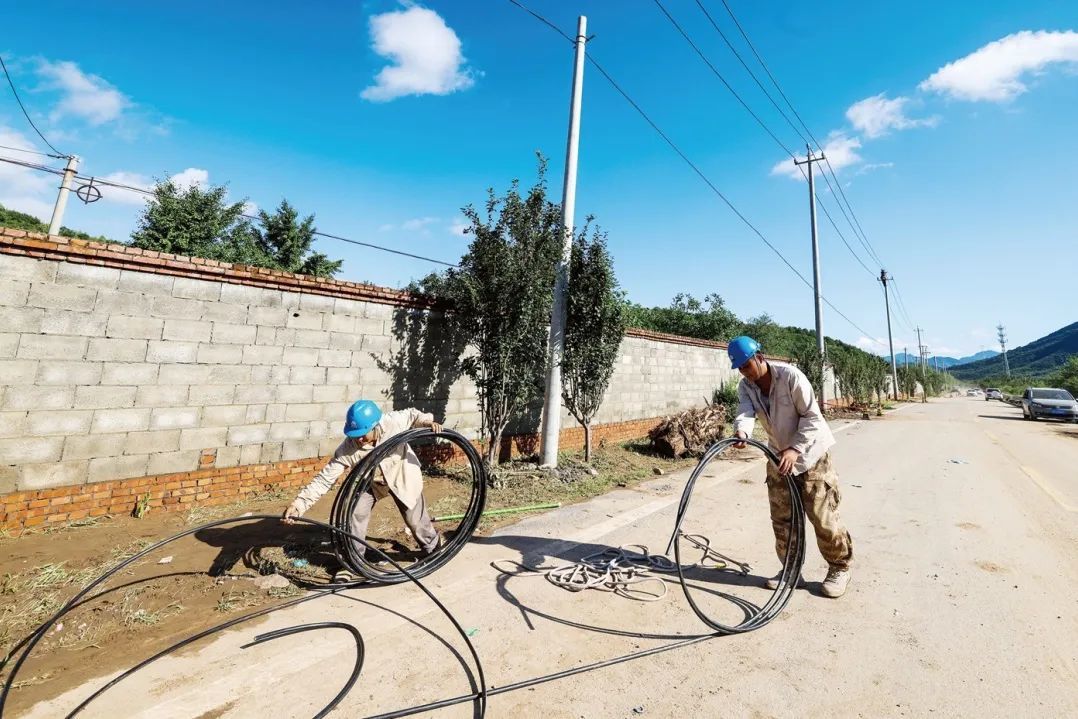 图三:国网天津蓟州公司抢修人员对黄崖关村供电设备进行复电。王建慧/摄
