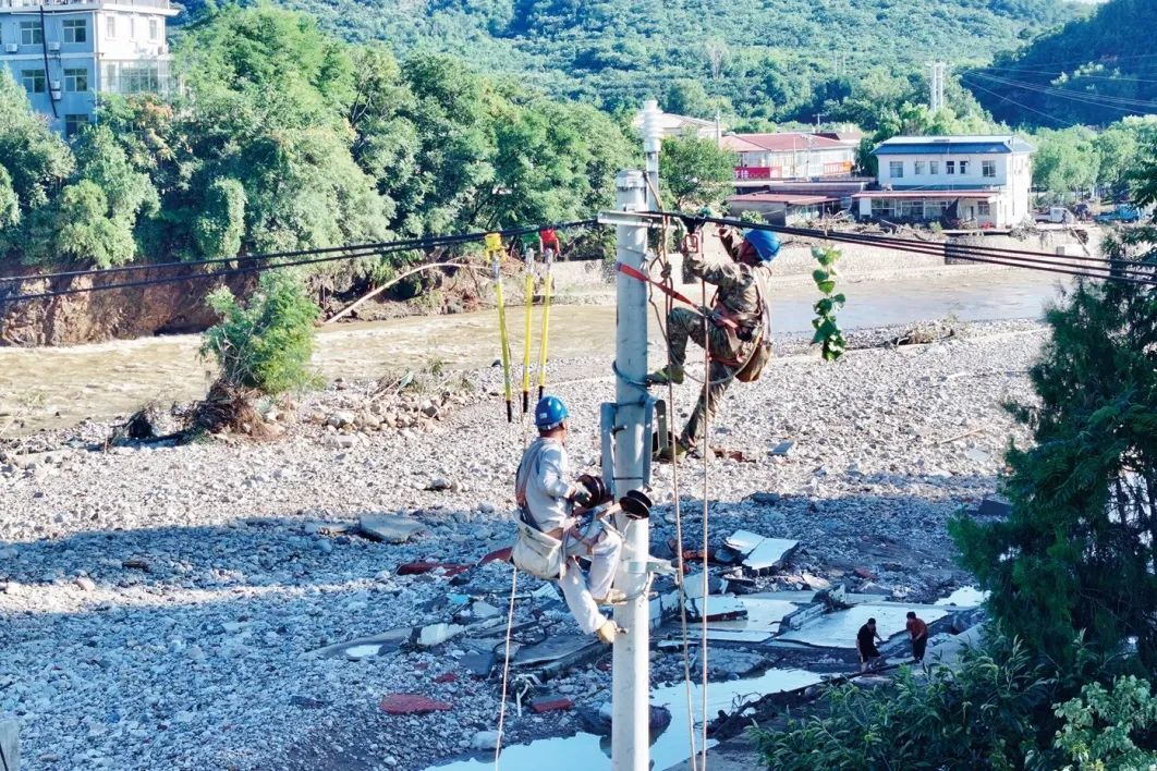 在北京市密云、怀柔、延庆、平谷等受灾区域,国网北京电力坚持“先复电、后抢修”,布防主配网抢修力量1300人,争分夺秒防汛救灾保供电。8月2日,经过电力抢修人员不懈努力、昼夜奋战,通过市电或应急电源接入等方式,实现北京受灾行政村供电全部恢复。