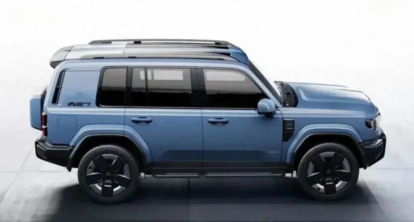 外观部分,虽然iCAR V27的前脸看上去有些像卫士,但是它的整体尺寸应该是比卫士更大,车长接近5米。方正的前脸还配备了撞色设计前格栅,从前包围底部的造型来看,该车拥有较大的接近角。