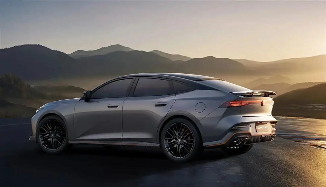 设计方面,新车采用了宽体轿跑的设计理念,大量使用直线条与折线组合的几何设计元素,看起来非常凌厉,车身遍布运动化套件,进气造型很夸张。贯穿式尾灯、电动尾翼、橙色四活塞卡钳、四出排气,给整台车带来了很强的性能感。整车的风阻系数为0.27Cd。