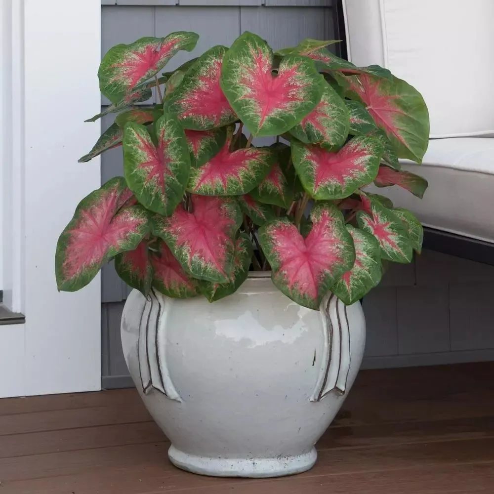 花叶芋就是我们平常所说的彩色叶子的观赏芋。它也是很常见的观叶植物,喜欢温润和较高的空气湿度。