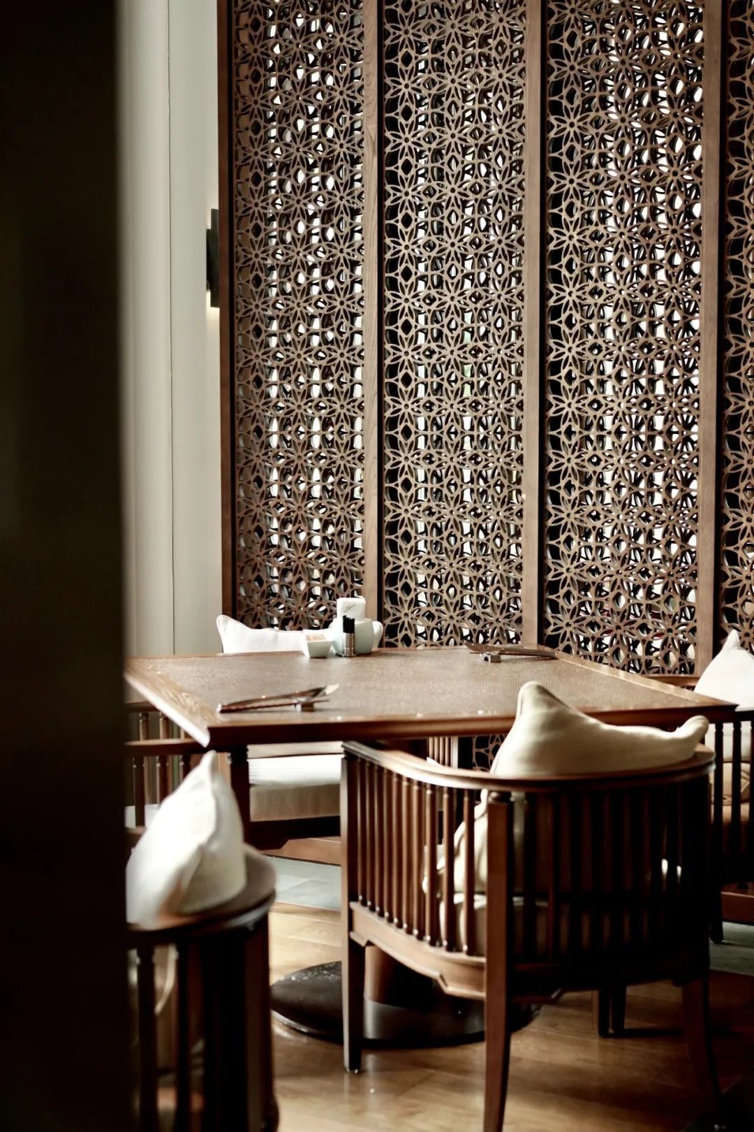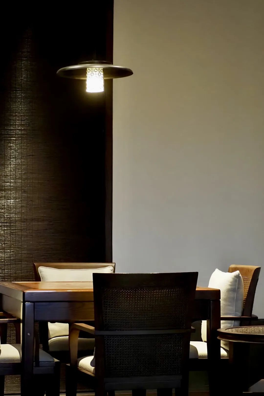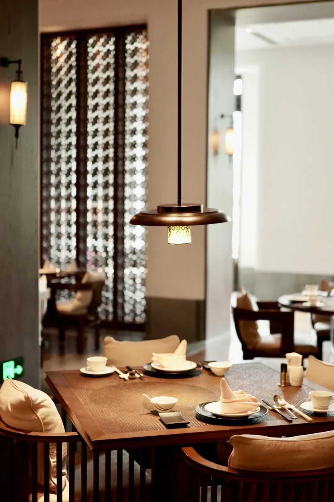 酒店餐饮空间层次分明:临池早餐厅,晨光漫洒,慵懒惬意;零点餐厅,光影柔和,质感内蕴;另有三间雅致包厢,其中最大者可容纳16人用餐。