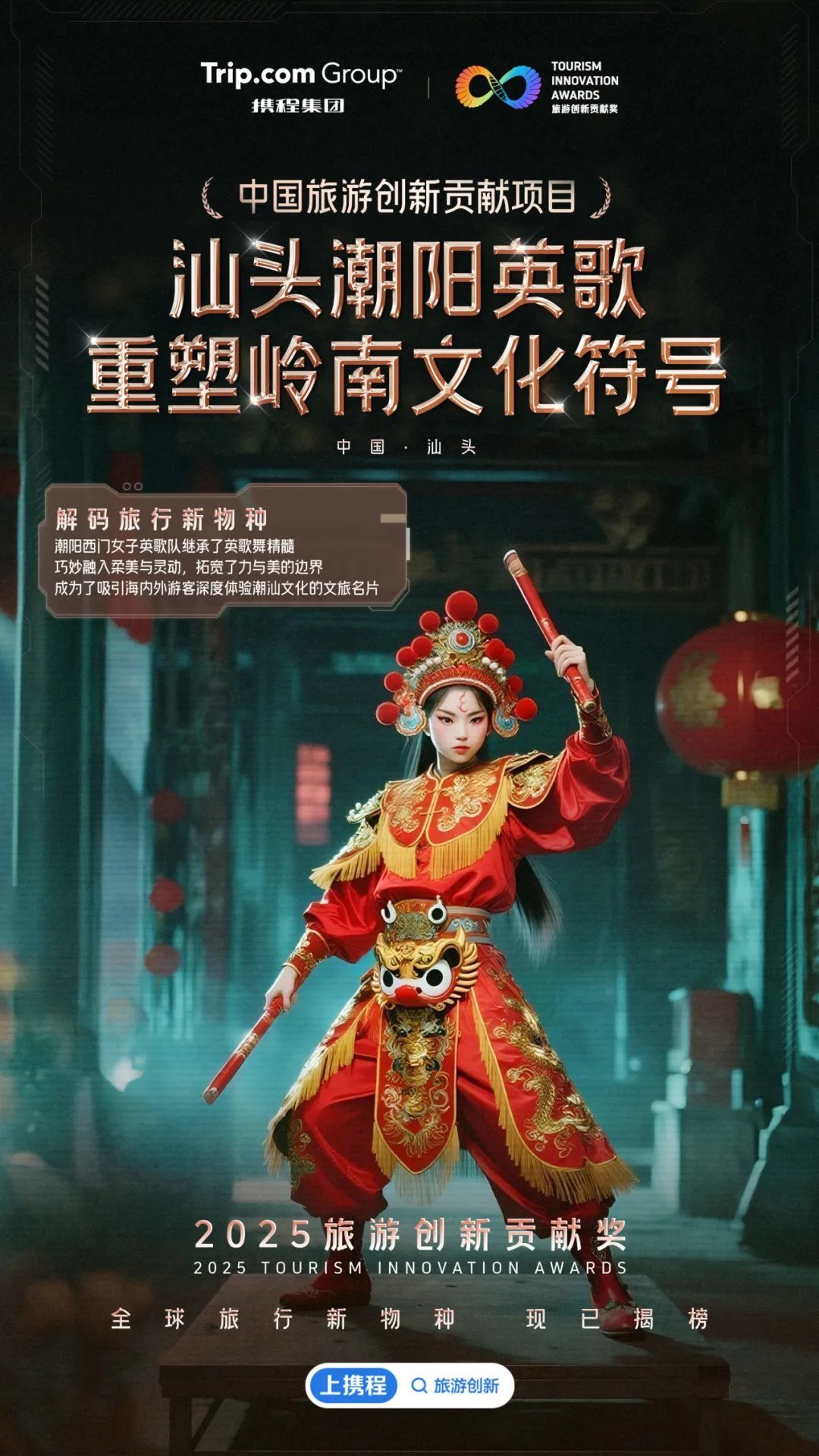 近日,携程集团发布2025“旅游创新贡献奖”,汕头潮阳西门女子英歌队作为获奖项目之一,与张家界七十二奇楼、拉斯维加斯AI艺术等全球创新案例共同获此殊荣。此次获奖不仅是对其创新实践的权威认可,更标志着潮汕非遗文化通过文旅融合路径,在全球旅行创新中标注出独特的文化坐标:源自潮汕街巷的古老鼓点,正以其强劲的创新脉动,为同类资源的现代转化提供着重要参照。