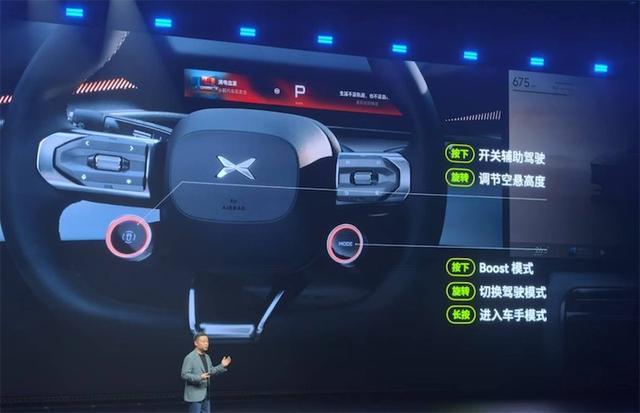 赛车风格方向盘也很有特色,配备豪华跑车同款卫星驾控旋钮,集成了开/关辅助驾驶、调节空悬高度、Boost模式、切换驾驶模式、进入车手模式等多项功能,让人瞬间肾上腺素飙升,更给人以人车合一的乐趣。顺便再和大家分享一个看似没有实际作用,但却给到用户额外情绪价值的设计,路怒消消气功能可以通过ARHUD向前车“丢表情包”,用户被加塞、别车时可以更好地排解负面情绪,有助于保障出行安全。