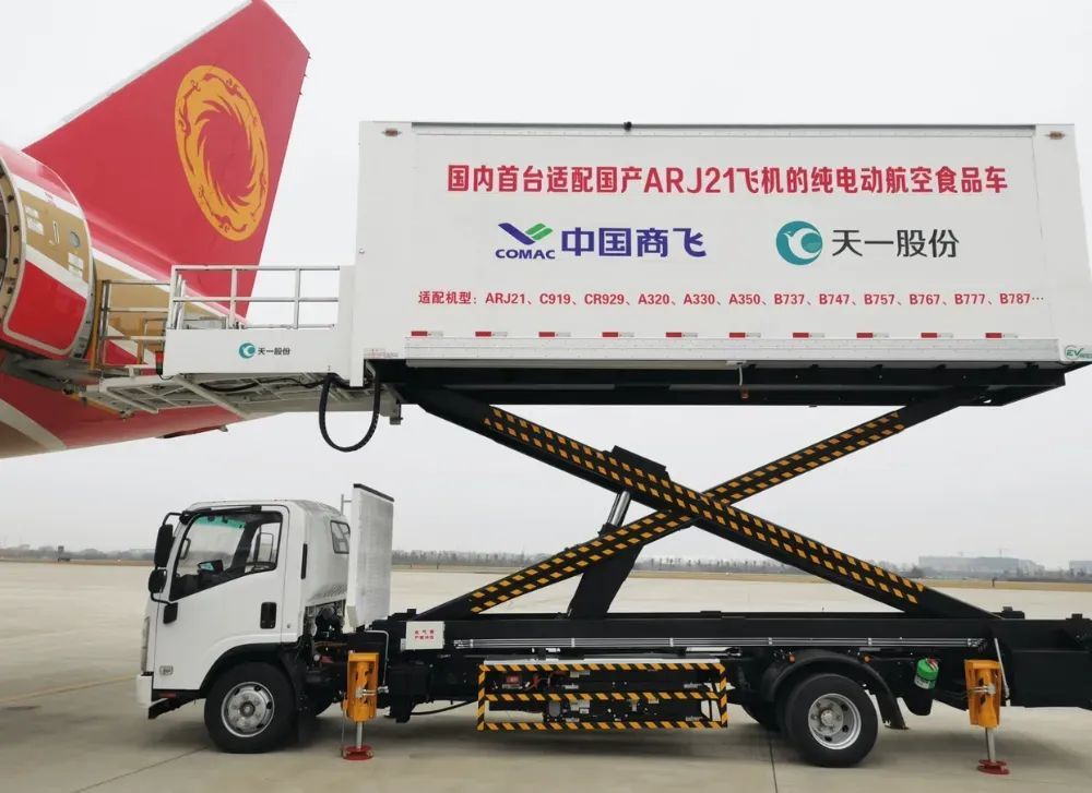 2019年,位于江苏盐城市的天一股份打造的首款纯电动航空食品车,通过国家工程质量管理中心检测,成为“全球领先、国内唯一”的新能源航食车。
