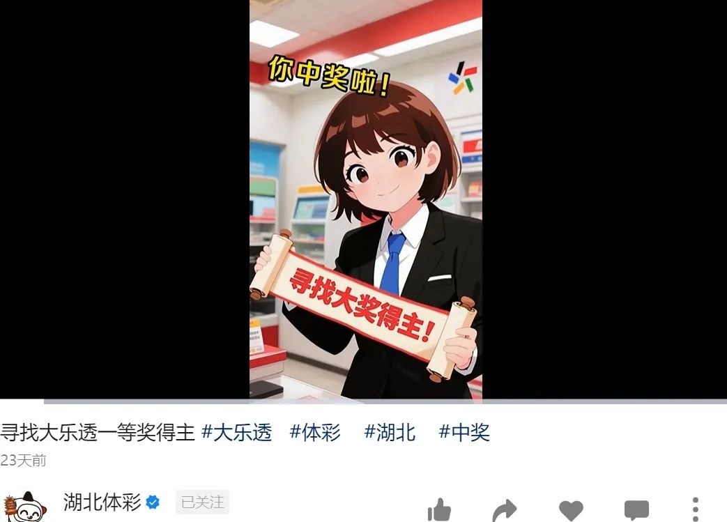 湖北体彩发布中奖信息。图/湖北体彩