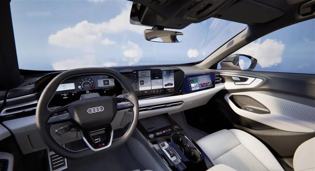 车内绝对是一汽奥迪A5L一大杀手锏。要说BBA目前科技感受最好的,还是得奥迪。A5L中控台配备11.9英寸的超薄OLED液晶屏幕、14.5英寸的中央控制屏幕以及10.9英寸的副驾驶屏幕,形成三联屏设计,与此同时,还加入了13.1英寸浮影W-HUD。