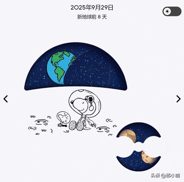 不稳重很好理解,塑料质感的表壳、海军蓝的配色、橡胶表带、史努比的联名,说是玩具有点轻浮,说是玩物则更贴切一些。表盘上除了月相,还加入了一个“地相”功能。官网宣传,这是2024年首次创新推出的复杂功能,展现的是从月球上远眺地球所见的景象。地相与月相一样,周期为29.5天,但方向相反。我们可以简单地把他看作是一个“有阴晴圆缺”的地球,要说复杂功能,官方说是,就是吧。