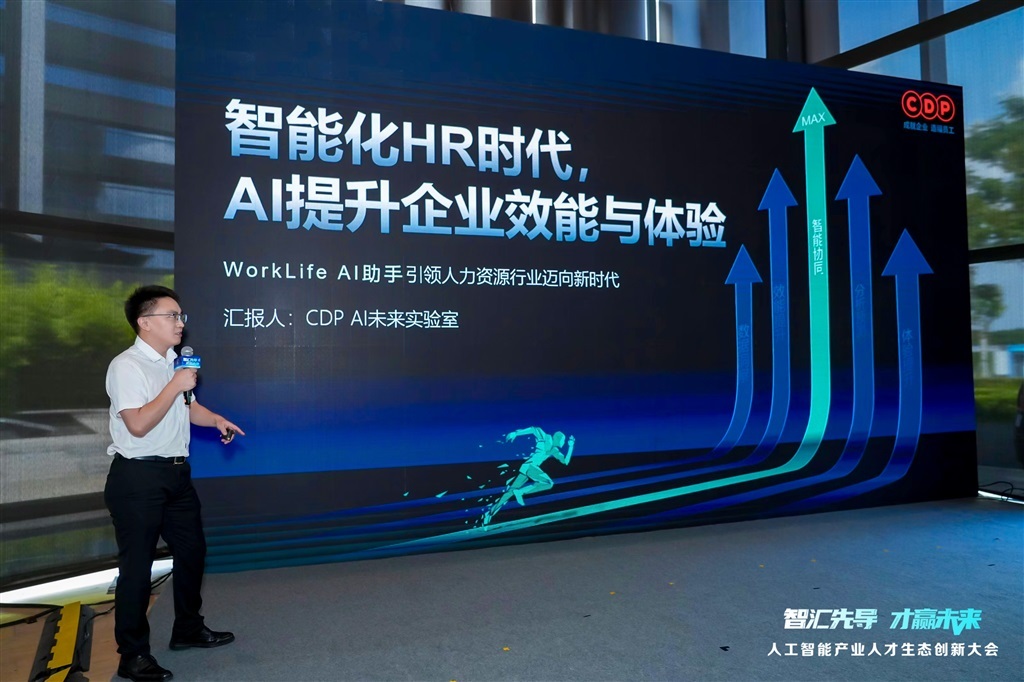 人力资源服务机构代表——国内领先的人力资源公司CDP集团专家中心高级专家覃北平,以《智能化HR时代,AI助力企业提升企业效能与体验》为题展开分享,凭借AI强大的数据分析与自动化能力,可以全方位赋能企业人力资源管理,提升企业运营效能与员工工作体验。
