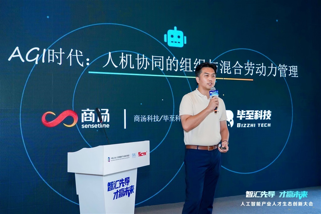 上海市优秀人工智能企业代表——商汤集团副总裁,毕至科技CEO赵峰带来《大模型时代下的混合劳动力管理(人加数字员工)》主题分享。他提出,在大模型时代下,通过明确分工、优化协作、强化培训和保障安全,对人类员工与数字员工进行管理,能够提升效率、降低成本,助力企业创新与可持续发展。