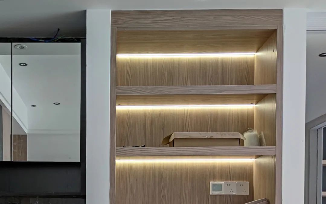 无主灯里的灯带,很多都是低压的,这就需要用到驱动器了,不过驱动器的尺寸稍微有点大,如果装灯带之前没规划好驱动器的隐藏安装位置,那么无主灯安装好后,驱动器外露的时候就必然翻车了!
