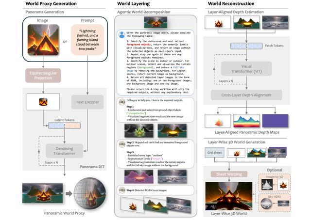 纯 2D 视频生成(如 Google 基础世界模型 Genie):优点是交互和动态效果丰富,但缺乏三维空间的稳定性约束。你往前走再回头,场景可能已经「面目全非」,无法构建一个逻辑自洽的世界。腾讯混元团队选择了一条更聪明、也更复杂的「2D+3D 结合」的混合路线,取长补短。