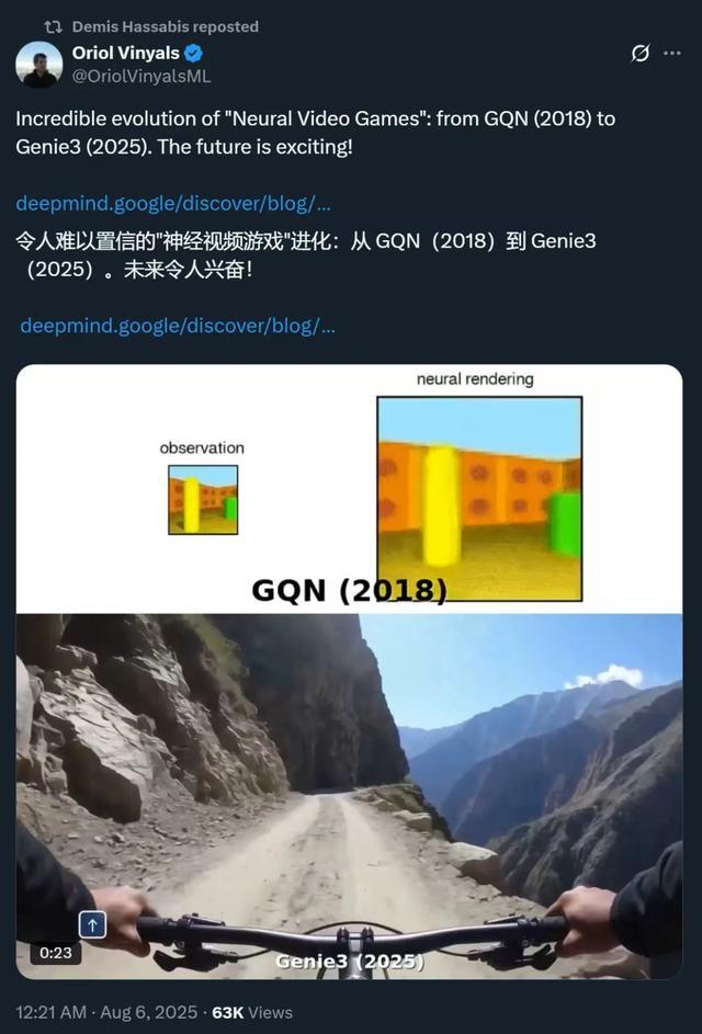 Genie 3虽然还不够长,用于生产力工作稍显不足,但以及证明了生产互动性世界是可以的,实现了1的开始还怕后面没有0吗?