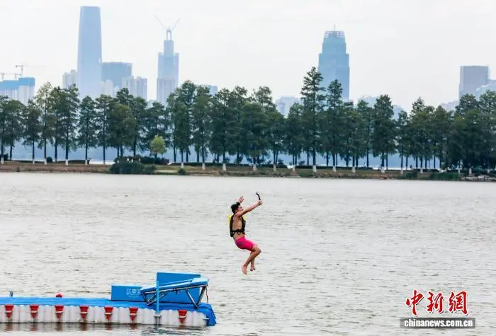 原标题:武汉青年人纵情“跳东湖” 炎炎夏日享清凉